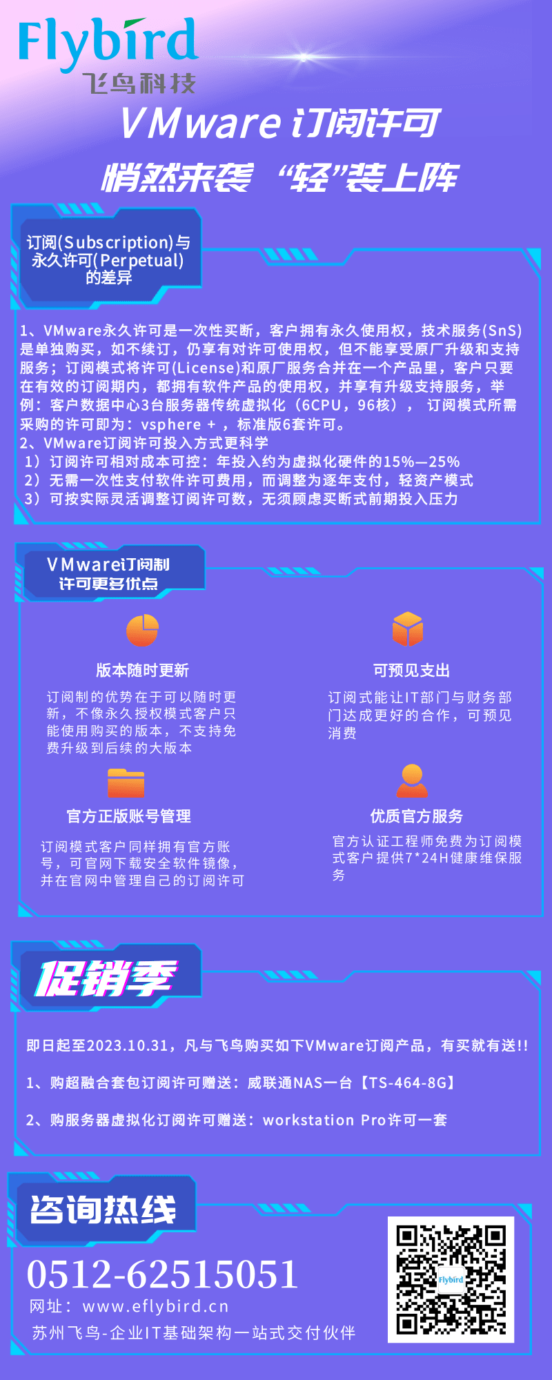 VMware订阅许可有买有送!欢迎联系飞鸟!