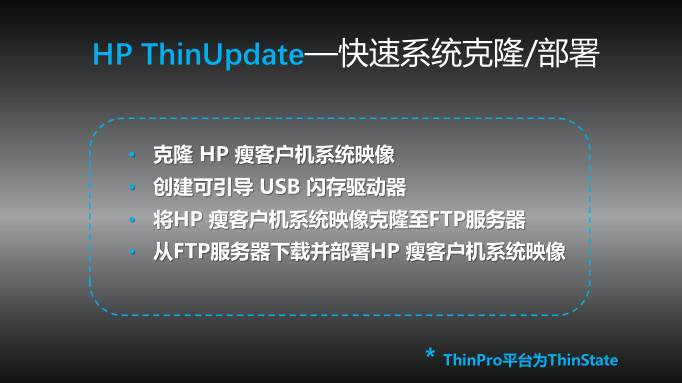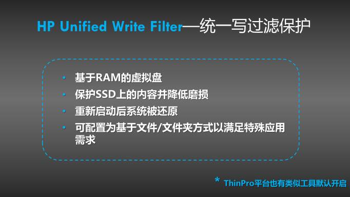 HP瘦客户机与传统PC有些类似,但是其配备了被人们称为Flash Rom或Flash ram的硅晶硬盘,瘦客户机可以在windows XPE, windows CE或Linux平台上运行,虽然瘦客户机可以运行Flash Rom上存储的任何应用程序,但一般只作为服务器的客户端来运行基于服务器的应用程序,另外,瘦客户机还可以提供本地浏览器,媒体播放机,简易终端或文字等功能,不论这些功能知否支持GVM,启动之后,瘦客户机的屏幕图像从外观和质感上来看与传统PC并没有什么明显的差别,而且您还可以执行各种功能,就像在传统PC上工作一样。