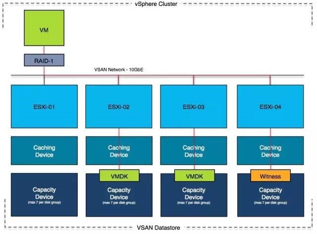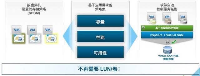 VSAN不同于传统存储卷交付,而是基于对象,针对每个虚拟机乃至VMDK进行资源分配,基于对应用的有效感知,更好的配置存储资源服务应用。