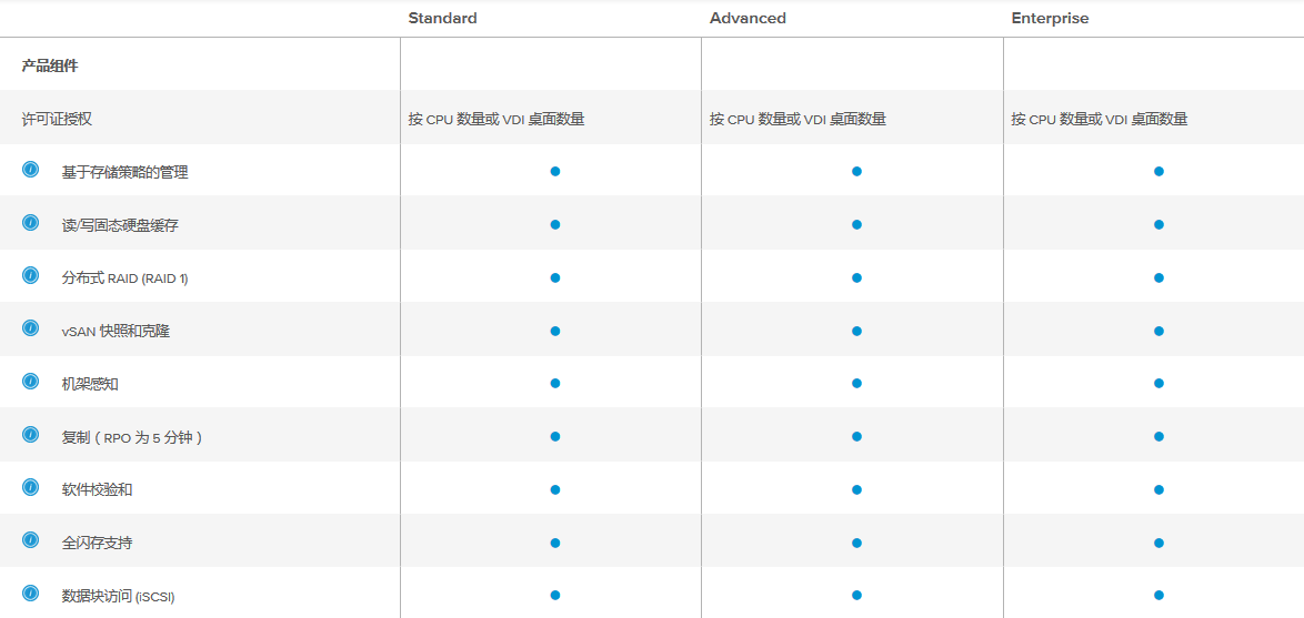 VSAN版本比较: