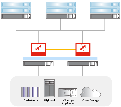 存储级高可用,实时切换存储路径,应用服务器无需安装代理服务器,存储实体独立。